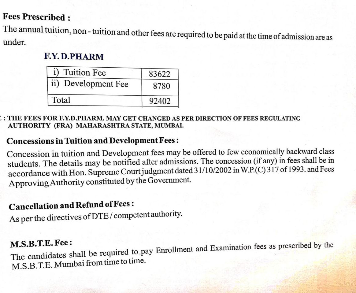 Approved by Government of Maharashtra and PCI, DTE & MSBTE, Mumbai.